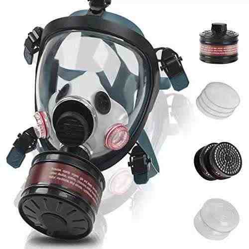 Masque à gaz réutilisable intégral à double protection, filtre, masque facial sphérique en silicone pour la lutte contre les incendies, masque à gaz de sécurité