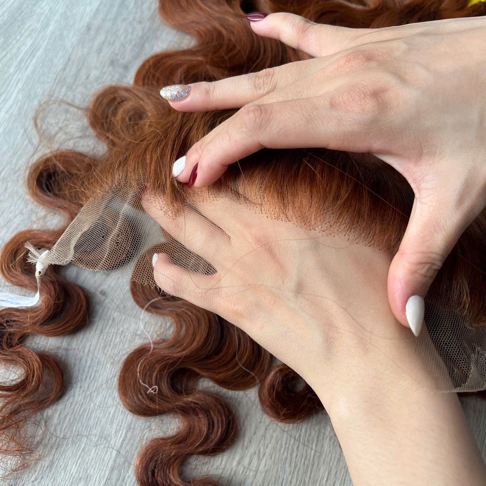 Dentelle invisible Full Frontal 13by4 HD, Extensions de cheveux vietnamiens de couleur brune de style Body Wave