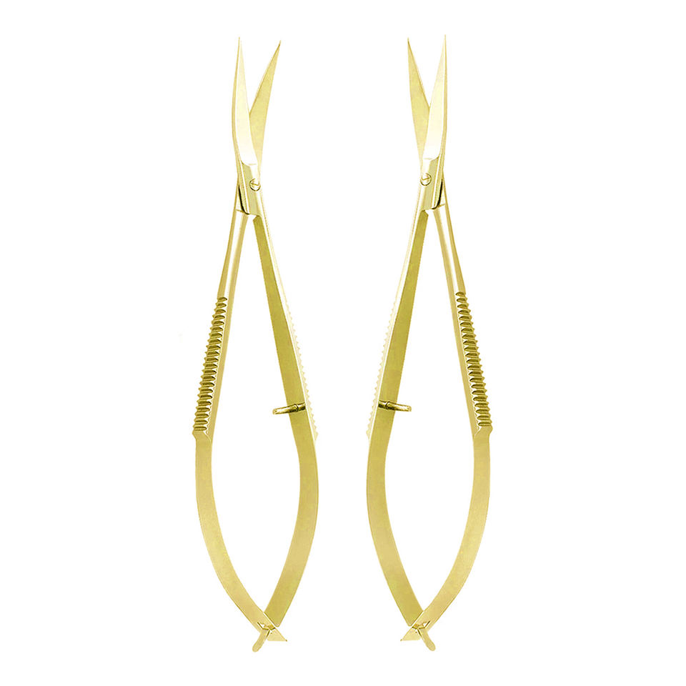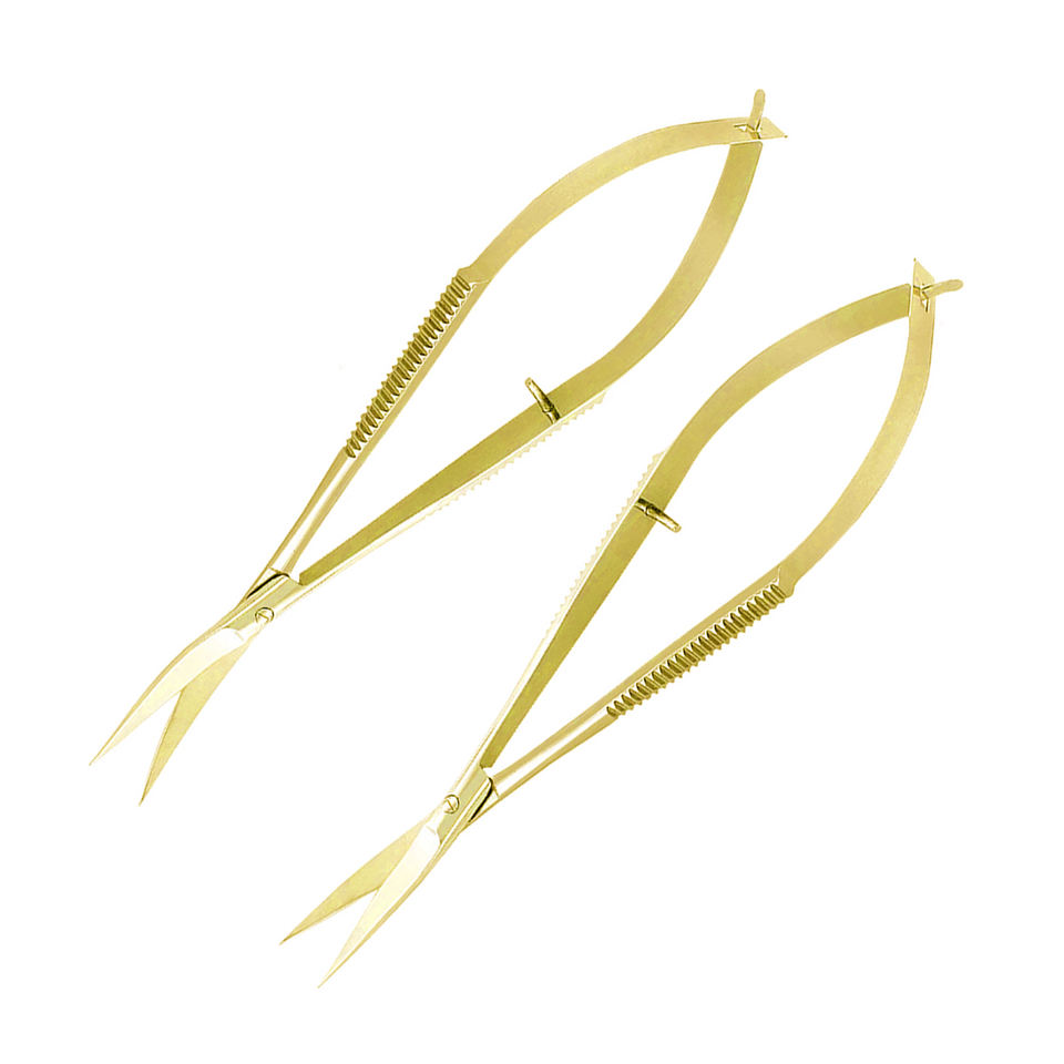 Ensemble de micro ciseaux couleur or poignées russes antidérapantes ciseaux à cils à ressort en acier inoxydable