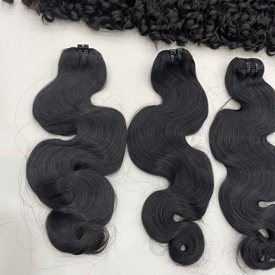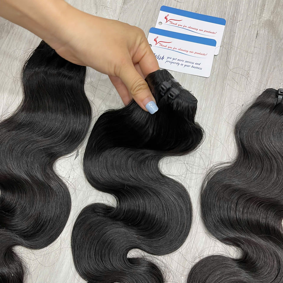 Extensions de cheveux naturels vietnamiens 100% de haute qualité, ondulés à la vapeur, noir de jais, prêts à être expédiés