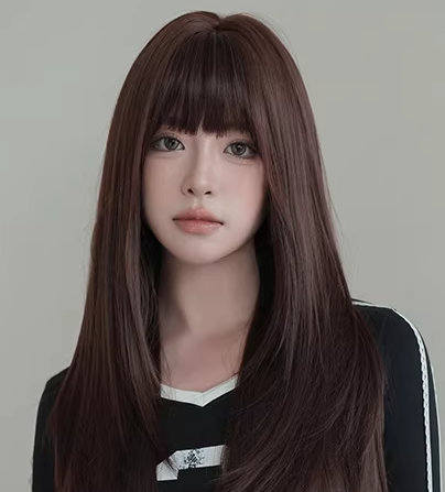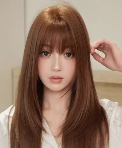 Perruque complète avec frange, cheveux longs et raides, dégradés, naturels, pour un usage quotidien, adaptée aux visages ronds et carrés