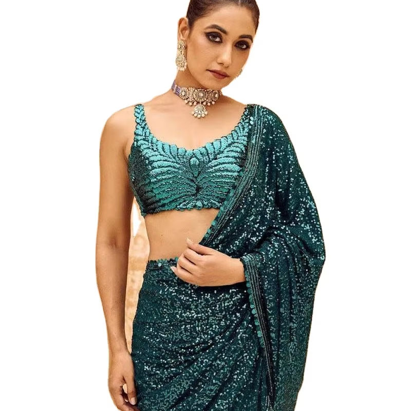 Pleine Broderie Lourde 5MM Séquence Rampe De Travail Prêt Riche Pallu Travail Adulte Spécial Léger Styles Saree Avec Blouse Pièce