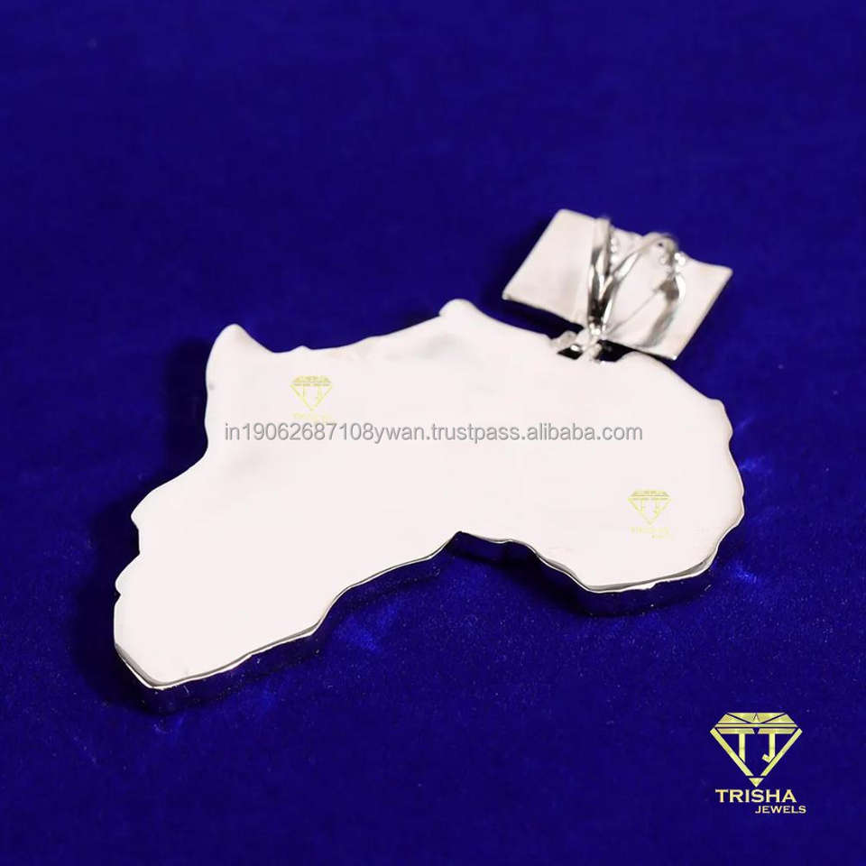 Pendentif carte de l'Afrique et drapeau des États-Unis entièrement glacé Pendentif Hip Hop en argent sterling 925 VVS Lab Grown Diamond