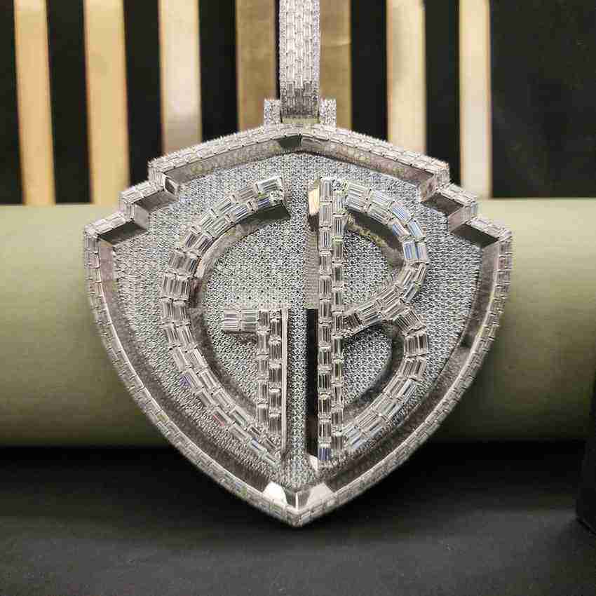 Pendentif entièrement serti de diamants de laboratoire personnalisés GB 63 CT, bijoux hip-hop en laiton plaqué argent sterling