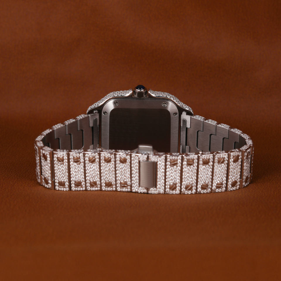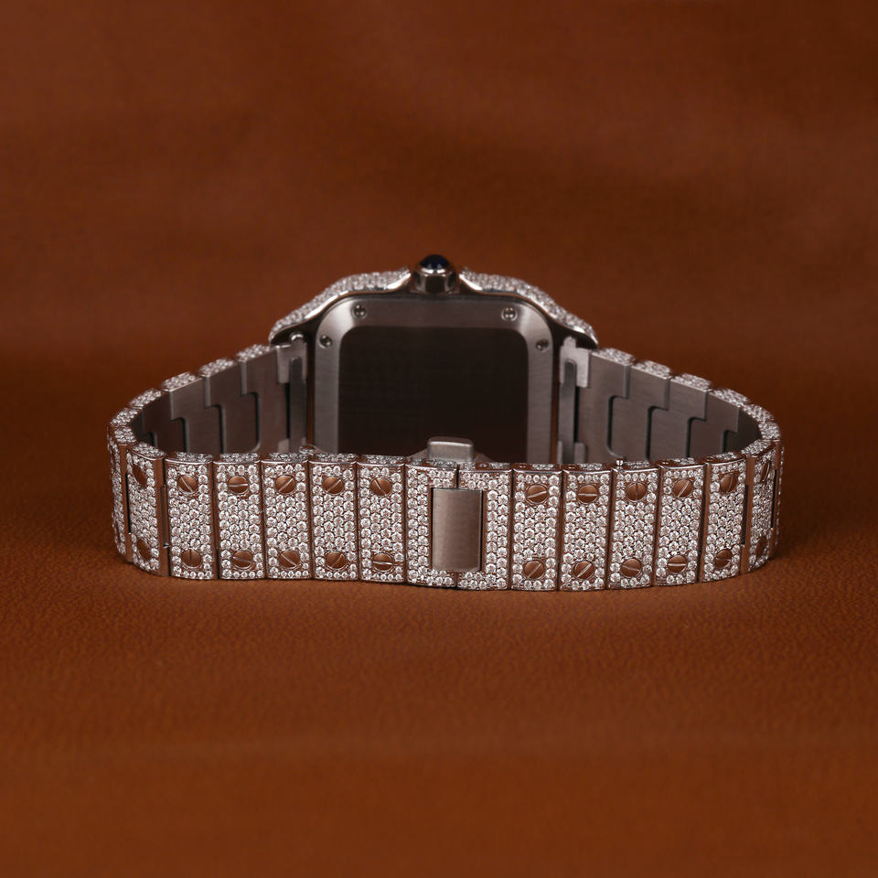 Montre de luxe en diamant Moissanite taille ronde entièrement glacée avec chiffres romains roses classiques Caractéristiques Montre en diamant Cadeau pour les filles