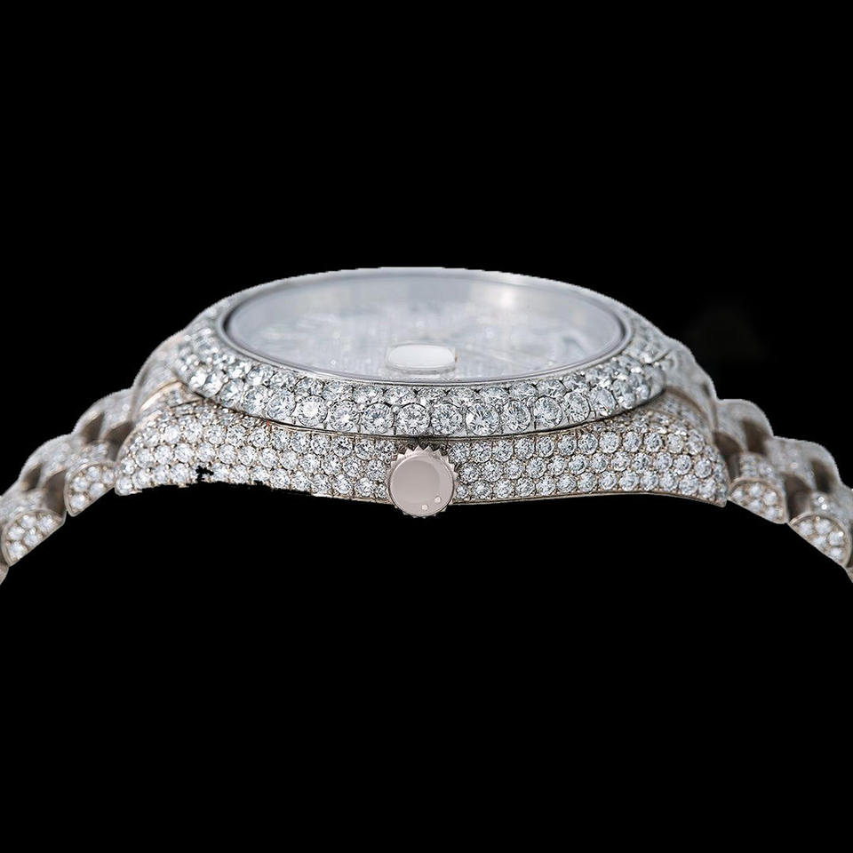 Men's Stainless Steel Automatic Movement Watch Analog Full Iced VVS Clarity Moissanite Date Function Japanese Manufacturer