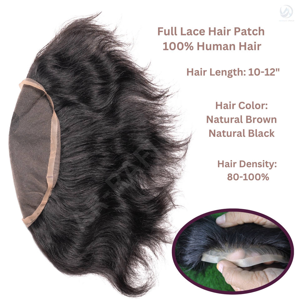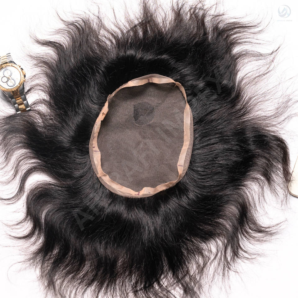 100% cheveux indiens Remy qualité supérieure toupet pour hommes avec technique de patch de dentelle complète texture droite 100% densité