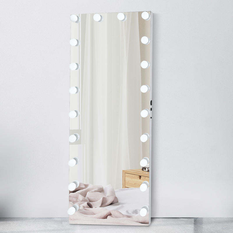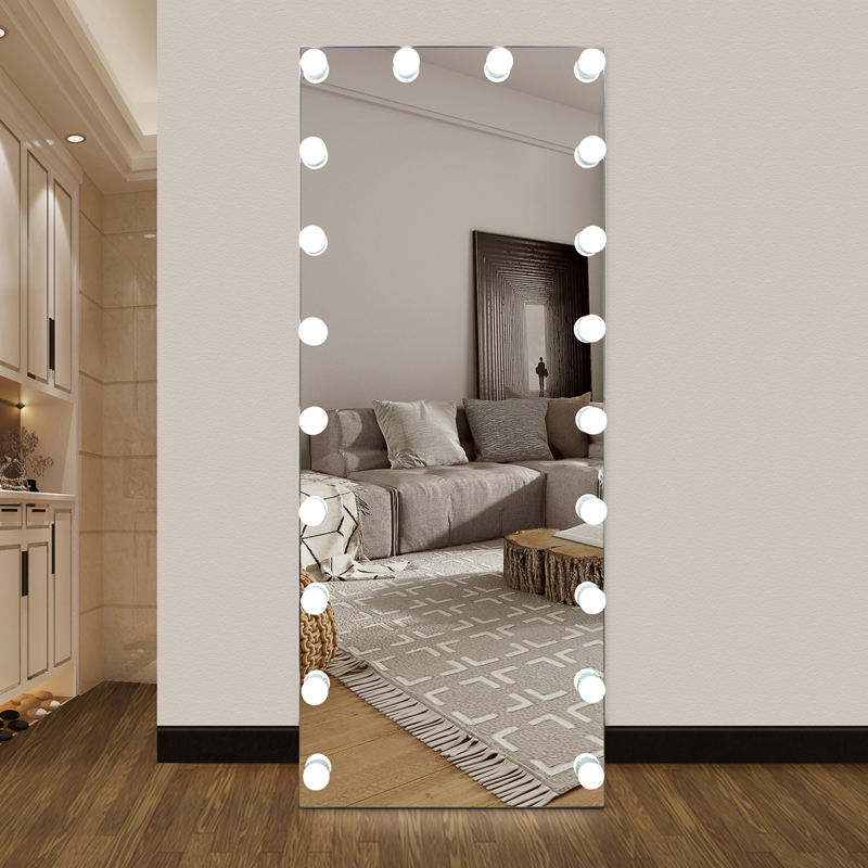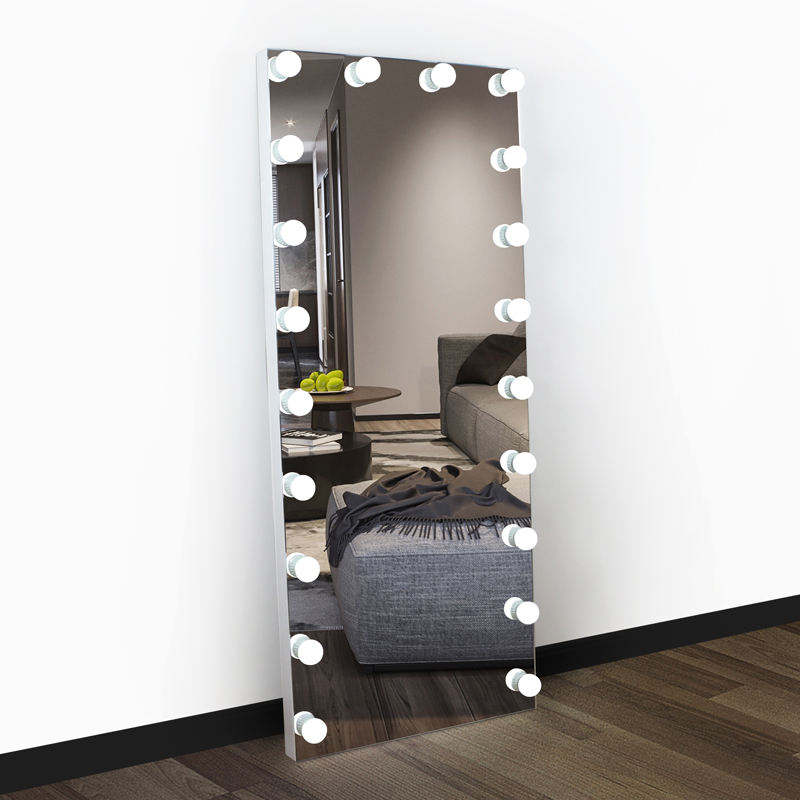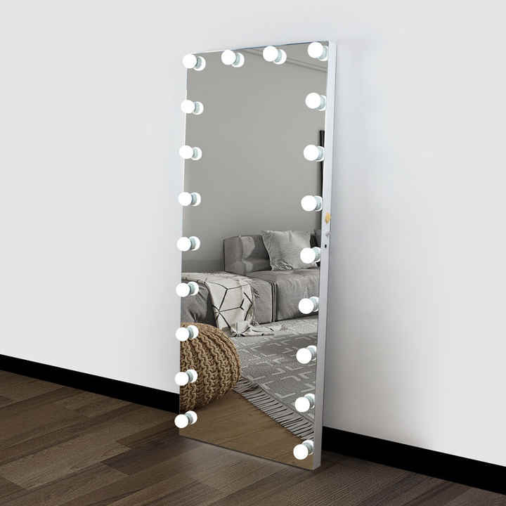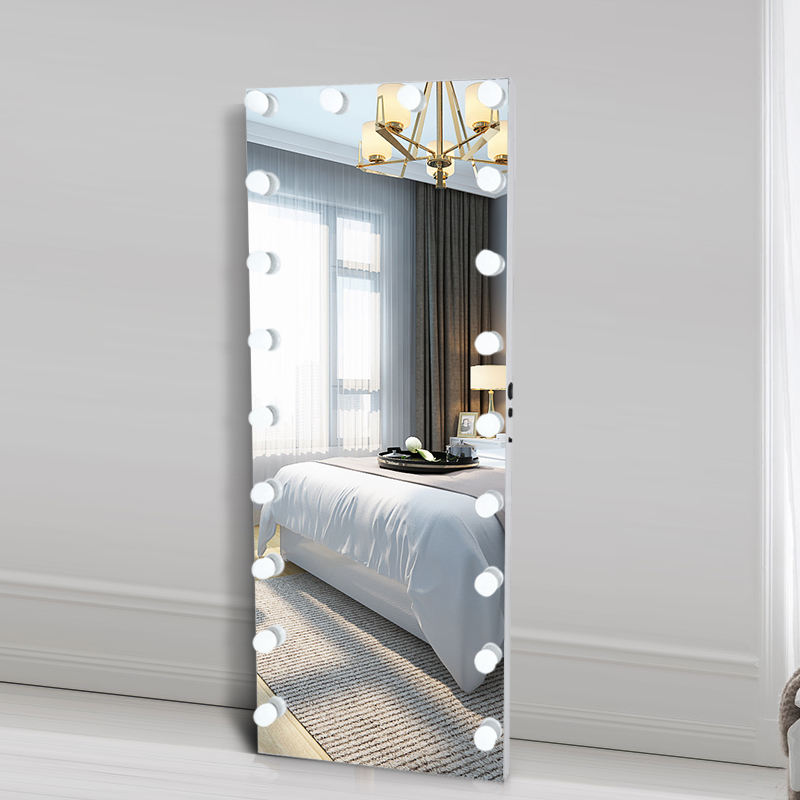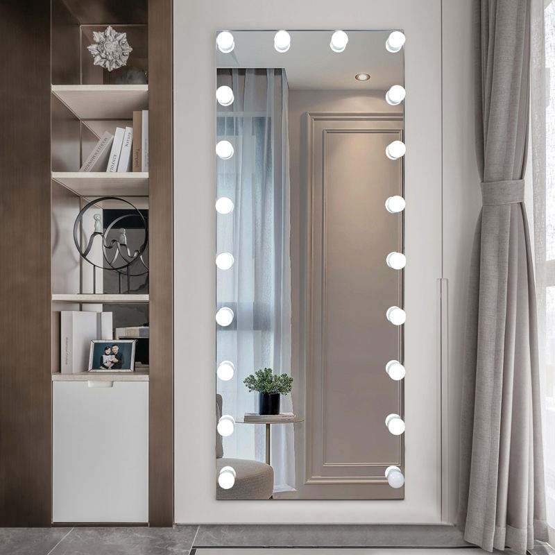 Miroir de maquillage LED pleine longueur avec éclairage à intensité réglable, cadre en aluminium, montage au sol/mural