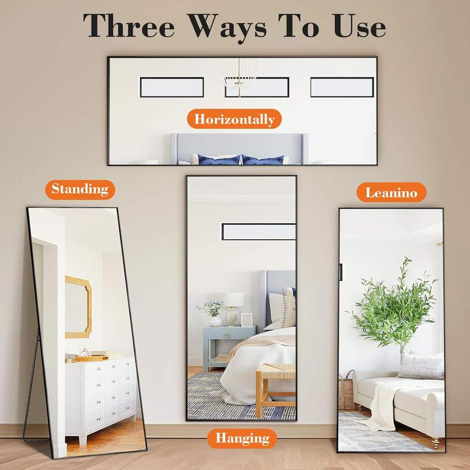 Miroir pleine longueur 64x21 pouces avec cadre métallique, sur pied, à poser contre le mur, pour chambre à coucher, dressing, maquillage, entraînement, moderne et simple