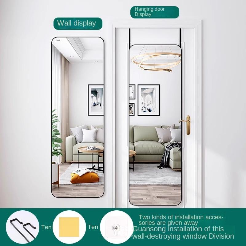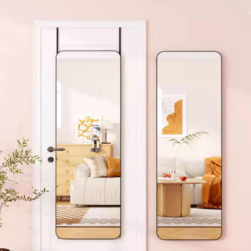 Miroir d'habillage auto-adhésif pleine longueur, design sans cadre suspendu au mur pour chambre à coucher à usage domestique