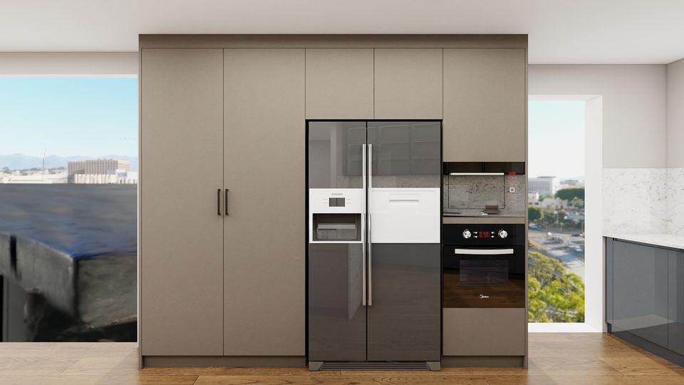 Armoires de cuisine sur mesure en contreplaqué haut de gamme, design moderne en bois mélaminé pour villa