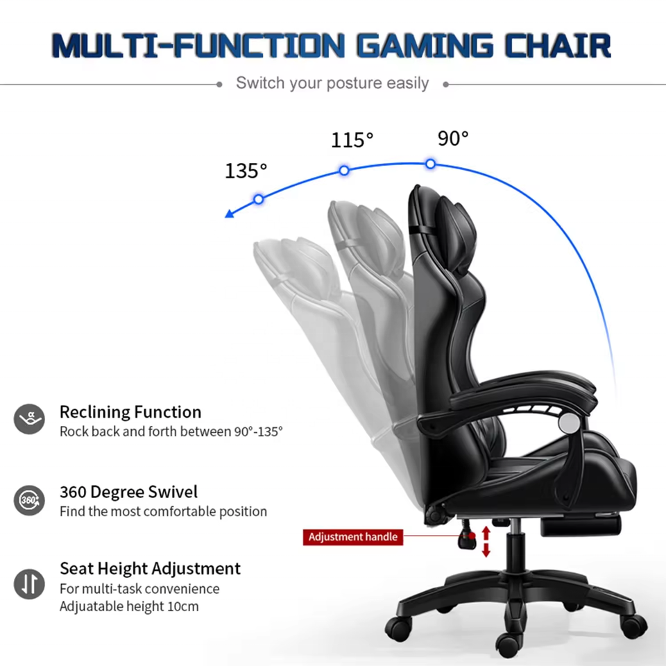 poids ajustable, Inclinable, Convertible, Refroidissement, Massage, Slipcovered, Rotation, Pliable, Housse amovible, Extensible, Confortable, Ergonomique, Multifonction, Tournant, Pivotant à 360 degrés, Accoudoirs réglables, Repose-pieds, Dos élevé, Soutien lombaire, RVB a mené des lumières, Autre