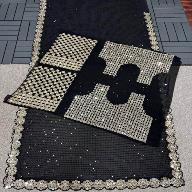 Full Mirror Work Faux Georgette Saree with Sequin Embroidery and Matching Blouse with Mirror Sleeves
