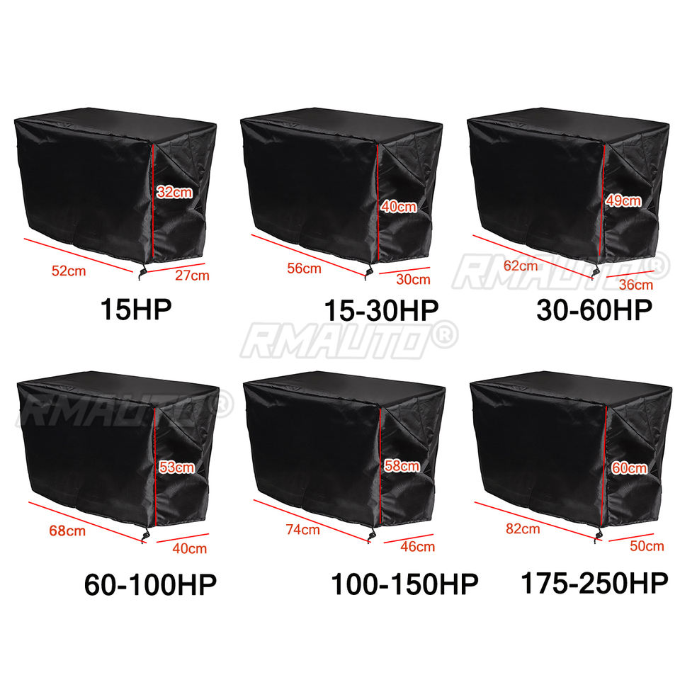 Housse de protection complète pour moteur hors-bord, noire, en tissu Oxford 210D, imperméable, anti-rayures, robuste, pour moteur hors-bord de 15 à 250 CV
