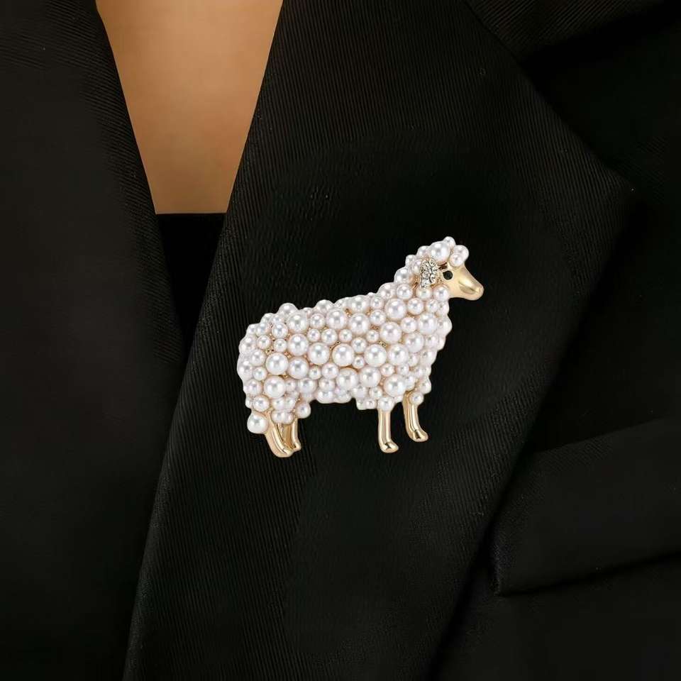 Broche en perles d'agneau - Convient aux hommes et aux femmes. Broche animale mignonne pour mariage de dames.