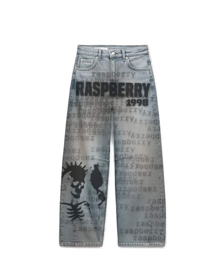 Pantalon en jean personnalisé avec impression intégrale, broderie et design en denim, délavage foncé, style urbain, coupe sur mesure faite main, coton respirant
