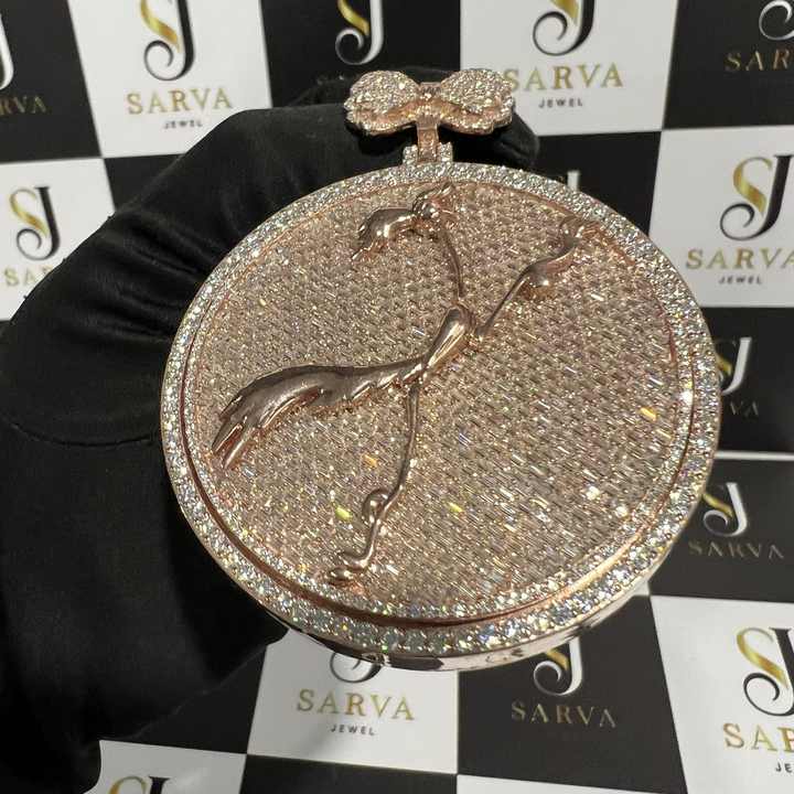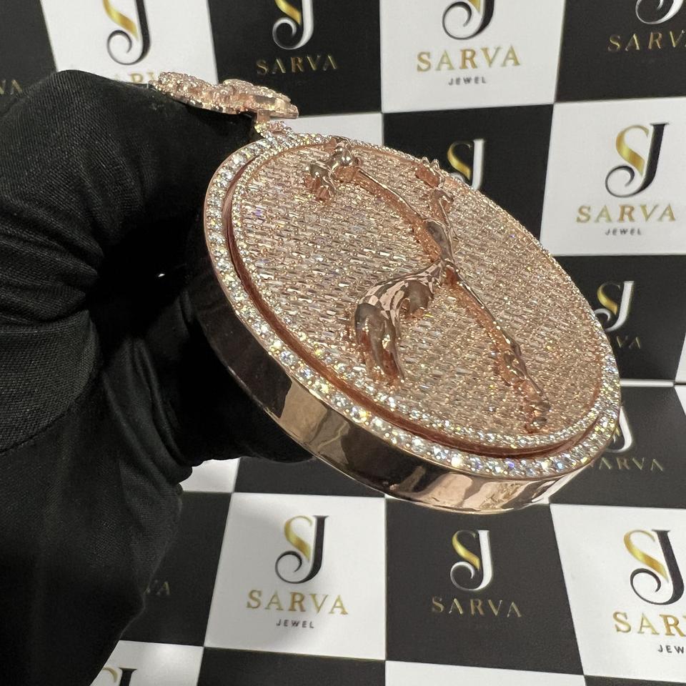 Pendentif rond en or rose plaqué, argent sterling 925, taille baguette, moissanite VVS, certifié IGI, pendentifs et breloques fins