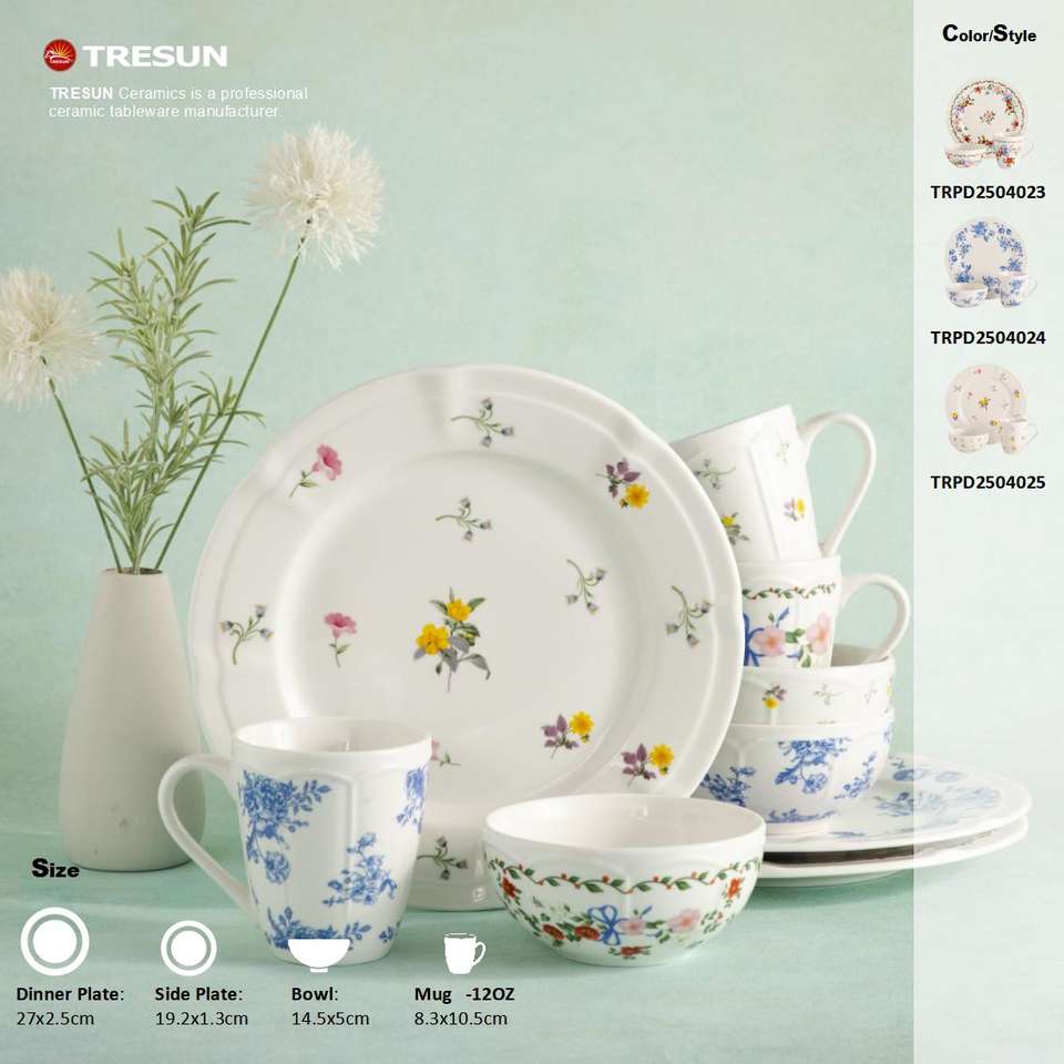 Ensemble complet de vaisselle en céramique à décalcomanies florales avec assiettes et bols Vaisselle élégante pour la maison ou le restaurant