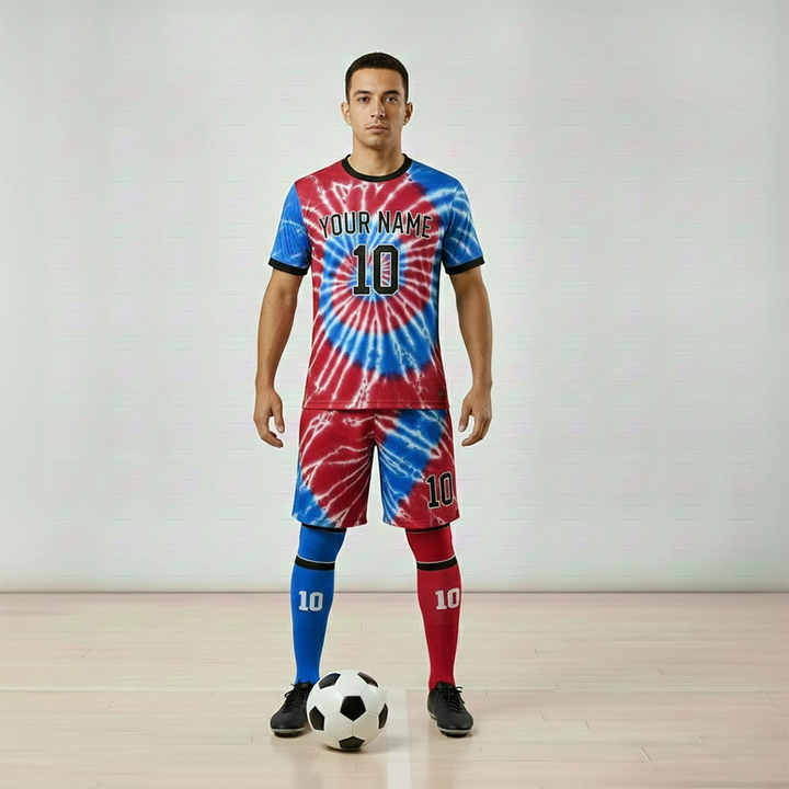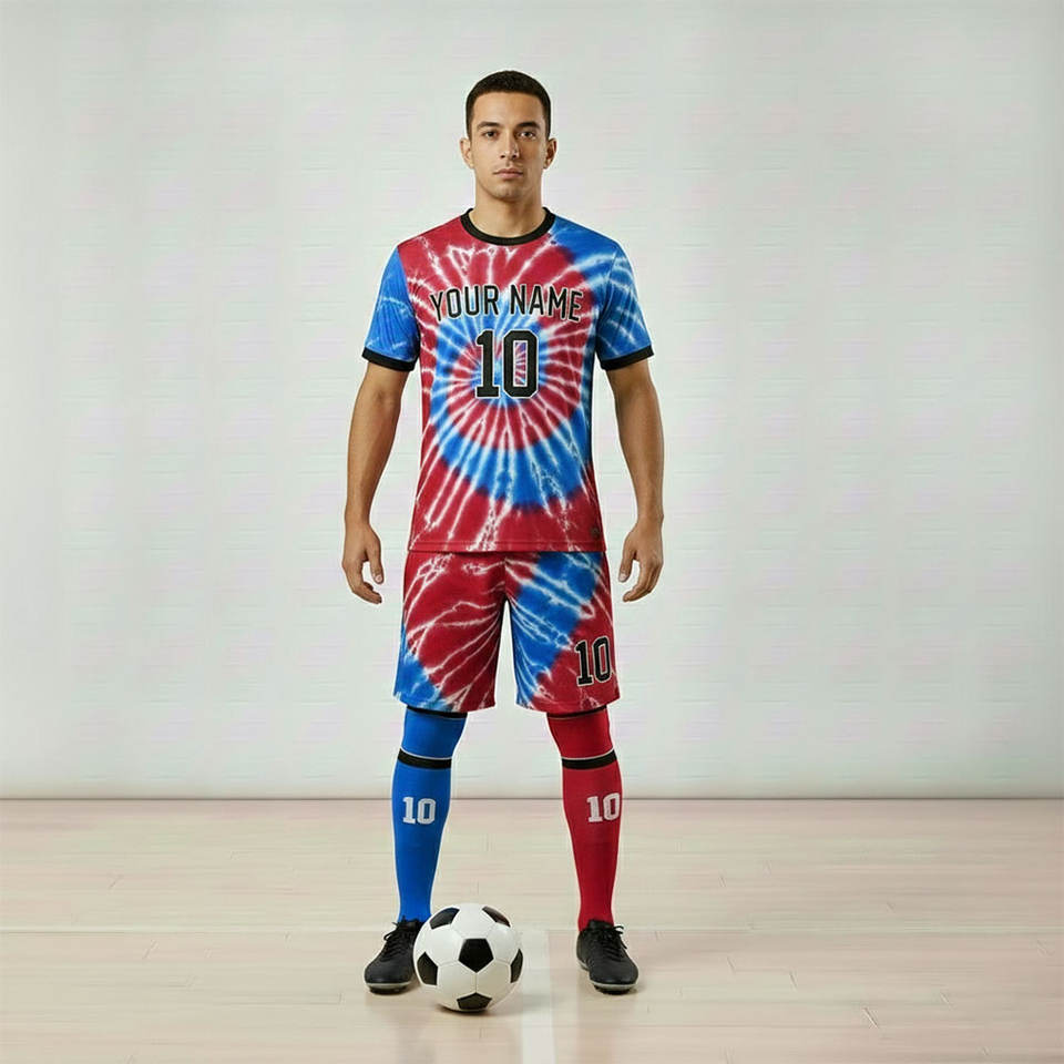 Ensemble complet d'uniformes de football imprimés à rayures, respirants, à séchage rapide, avec nom d'équipe personnalisé, manches courtes, mélange de polyester, unisexe adulte