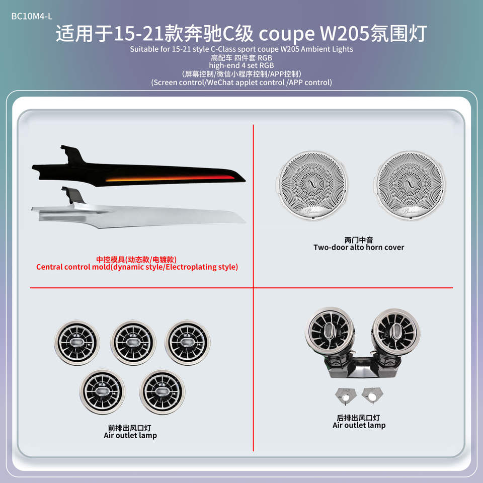 Kit complet d'éclairage d'ambiance LED W205, turbine lumineuse, couvercle de haut-parleur de porte de voiture pour Benz Classe C 2015-2021, lampe d'ambiance