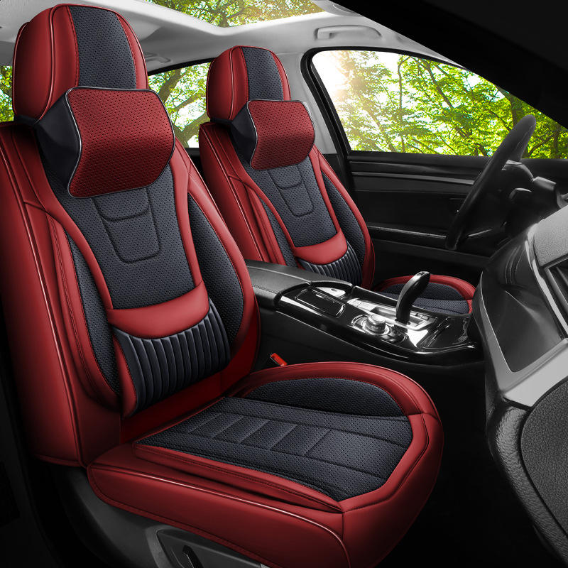 Ensemble complet de housses de siège de voiture universelles en cuir PVC avec coussin de siège de voiture, accessoires intérieurs de voiture - Modèle A5