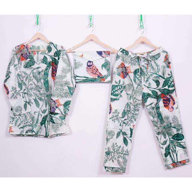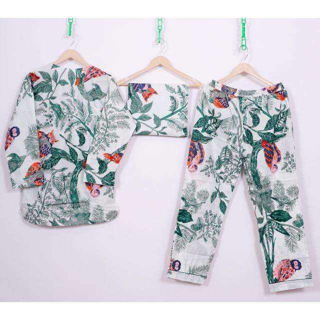 Ensemble de pyjama 2 pièces en satin 100 % coton imprimé à la main, taille élastique, manches longues, respirant, prix de gros