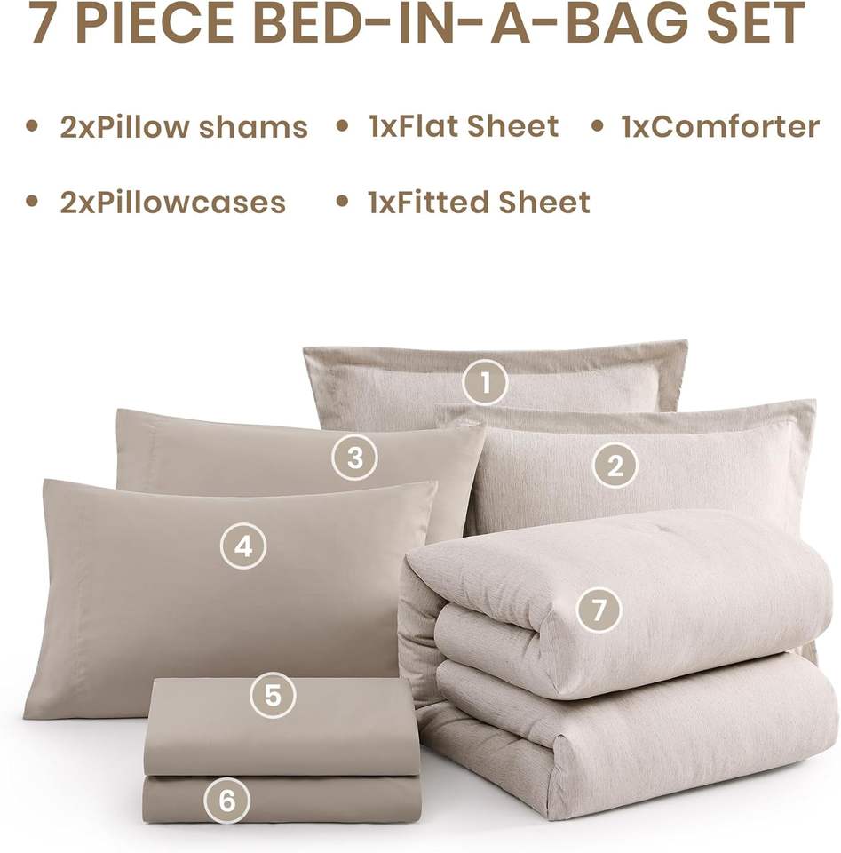 Ensemble de couettes pleine grandeur, flocons d'avoine Beige gris ensembles de couettes 7 pièces complètes avec couettes, draps, taies d'oreiller et taies d'oreiller