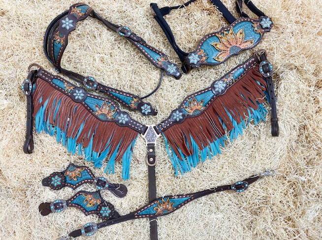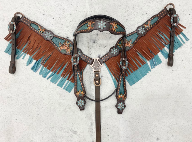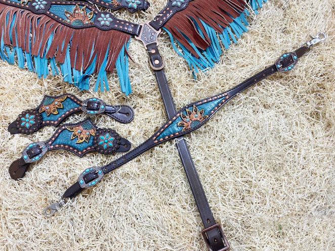 Feature 3:Breast collar cheek piece, turquish leather inlay.