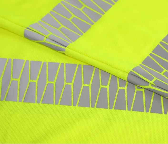 Chemise de travail boutonnée à manches longues pour polyester fluorescent haute visibilité Logo imprimé par transfert de chaleur personnalisé Sécurité réfléchissante