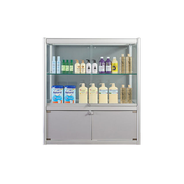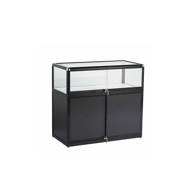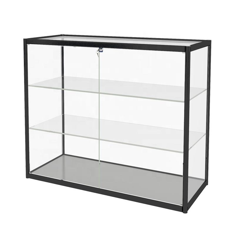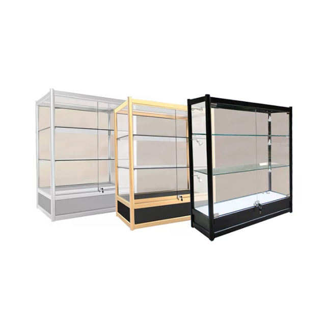 Vitrine en verre et aluminium à vision complète pour l'affichage, comptoir en verre avec éclairage LED, porte coulissante, boutique, vin rouge, vitrine à bijoux