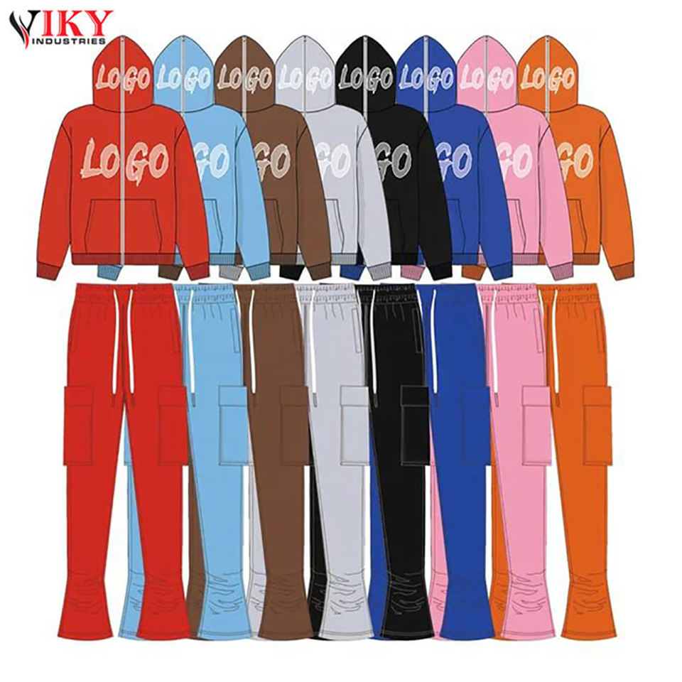 Survêtement zippé pour homme imprimé de logo personnalisé Ensemble de survêtement zippé intégral pour hommes ensembles pantalons de survêtement et sweat à capuche superposés