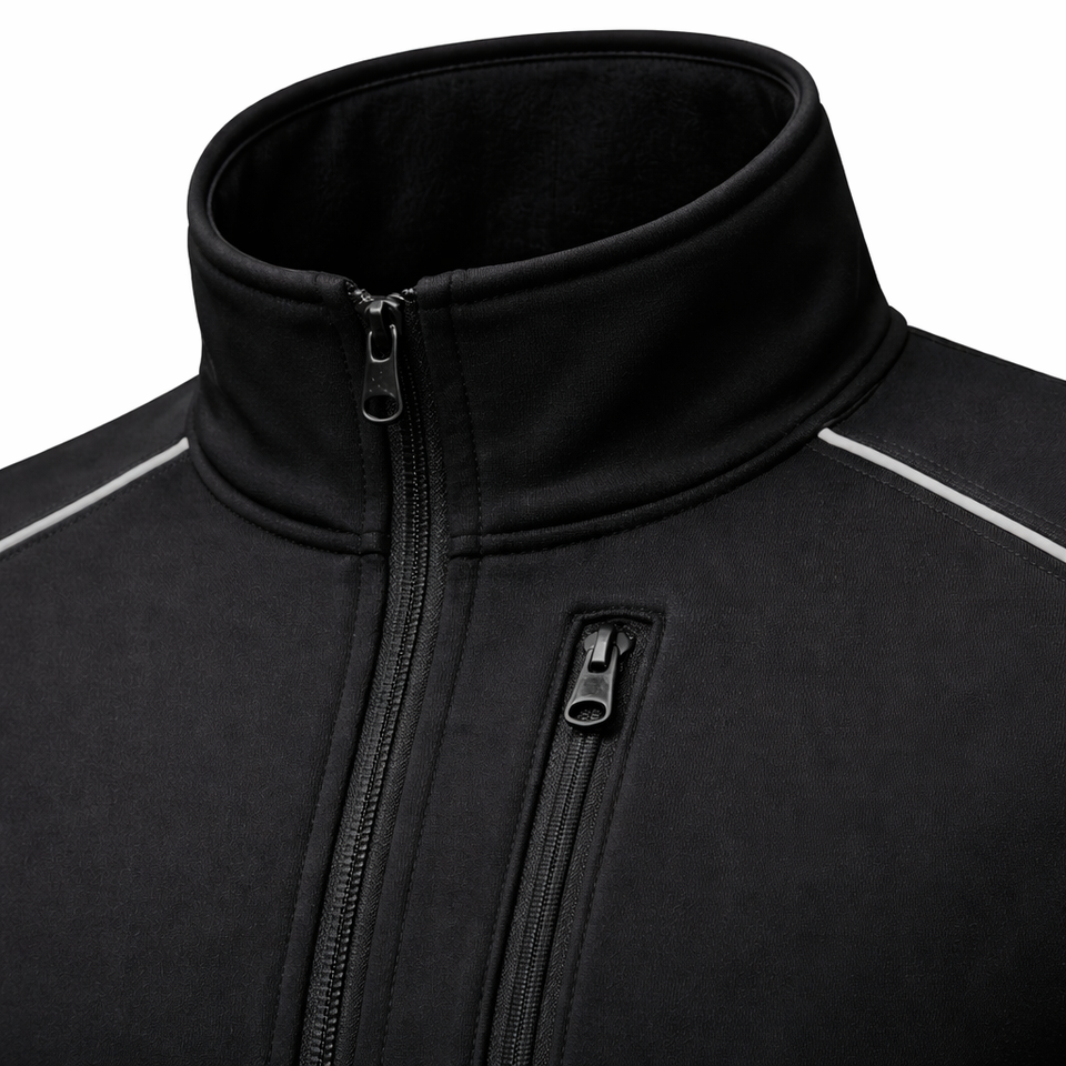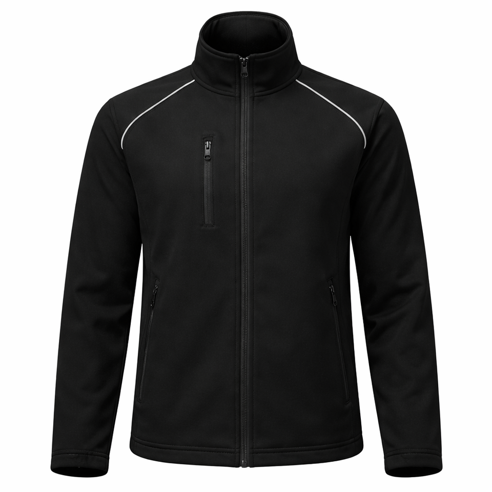 Veste softshell coupe-vent et résistante à l'eau pour le travail en extérieur avec fermeture éclair intégrale, bandes réfléchissantes et poche poitrine zippée