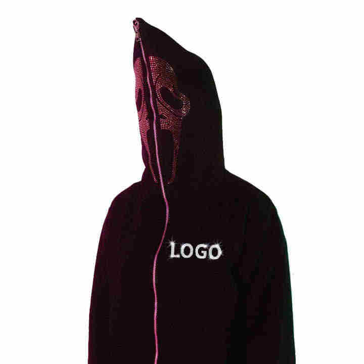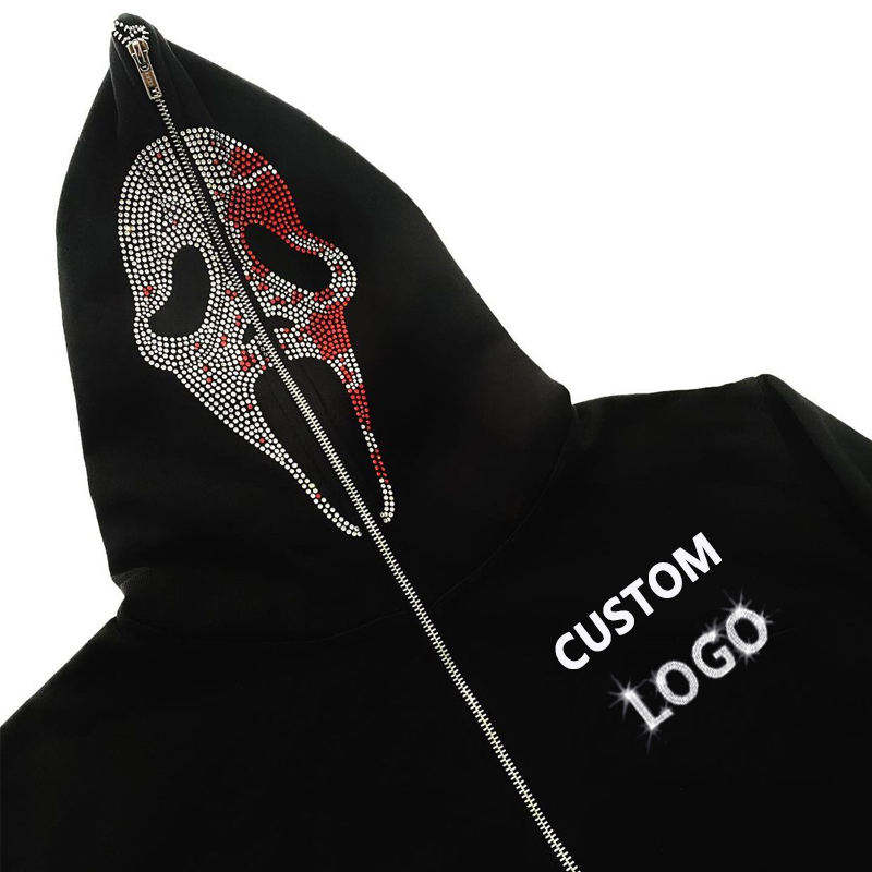 Sweat à capuche à fermeture éclair sur le visage avec strass, sweat à capuche imprimé personnalisé sur toute la surface, sweat à capuche graphique en éponge française d'usine, sport pour hommes