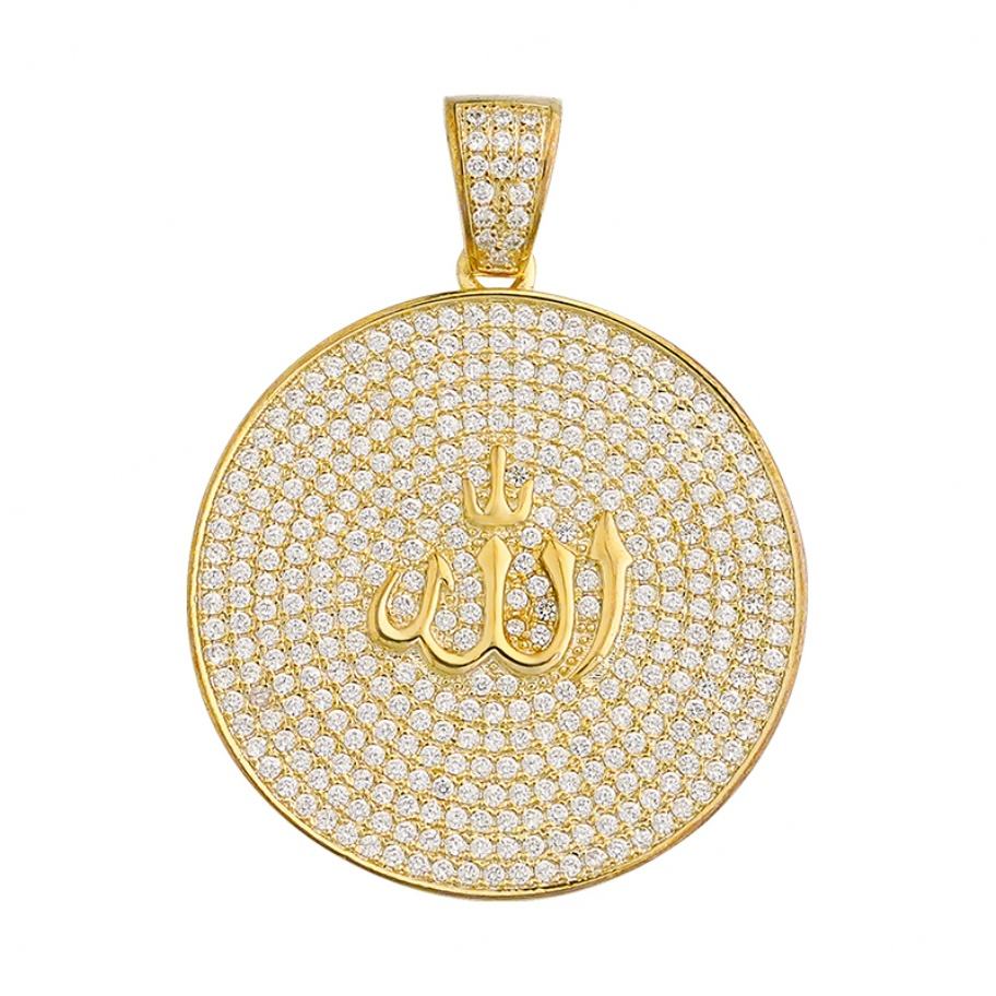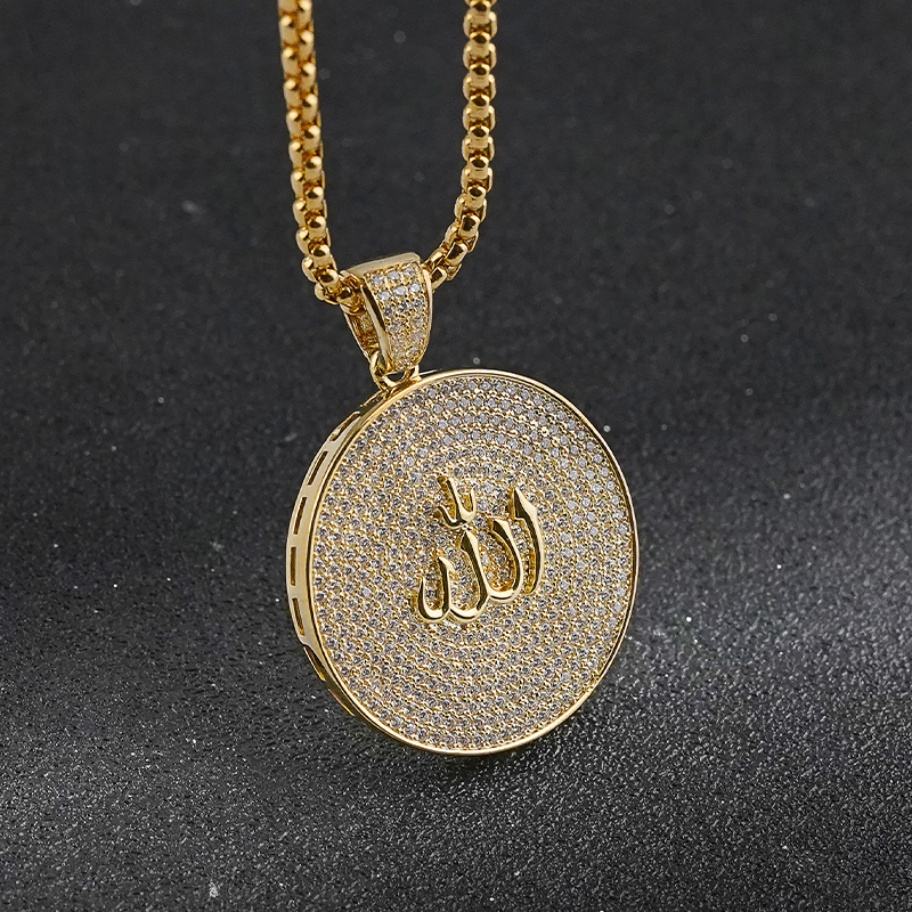 Pendentif religieux en zircon complet, plaqué or arabe, bijoux islamiques musulmans, pendentif rond en laiton, collier Hip Hop Allah, accessoires pour hommes