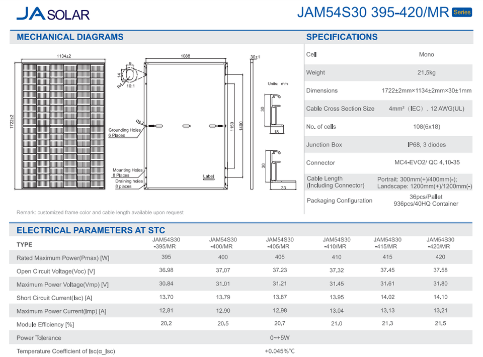Plage de puissance: 395W-415W