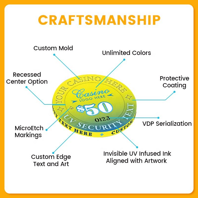 Jetons de poker imprimés en couleur, bon marché, de haute qualité, 14 grammes, en argile, pour jeux de cartes et de société