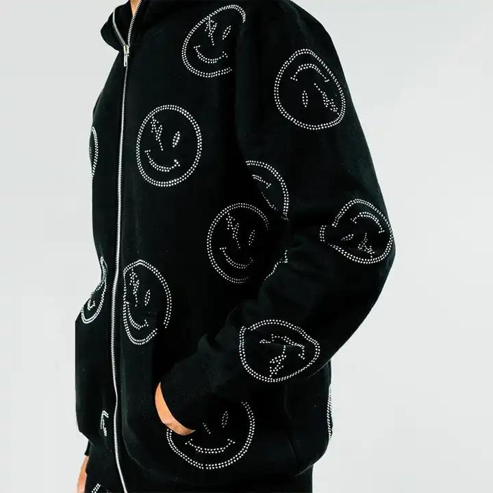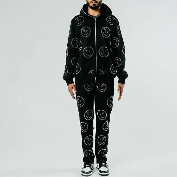 Survêtement décontracté pour homme de haute qualité, uni, avec strass, manches longues, léger, respirant, écologique, personnalisable