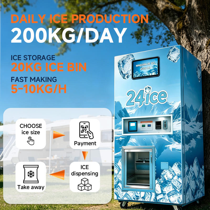 Machine à glaçons entièrement automatique avec ensachage, distributeur d'eau et de glaçons par osmose inverse, machine distributrice de glaçons avec ensachage automatique