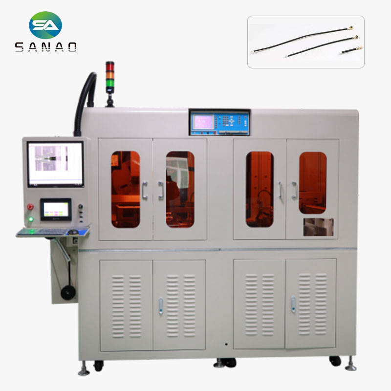 Machine entièrement automatique de coupe de câbles coaxiaux, de dénudage multicouche, de sertissage et d'enrobage à l'étain