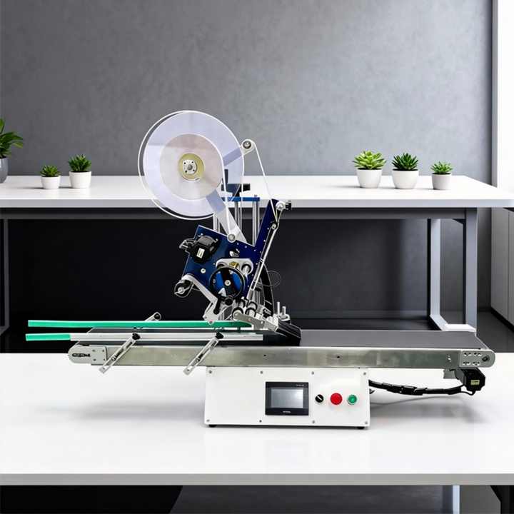 Machine d'étiquetage automatique de bureau pour surfaces planes, machine d'étiquetage de table pour surfaces plates, machine d'étiquetage pour bouteilles carrées