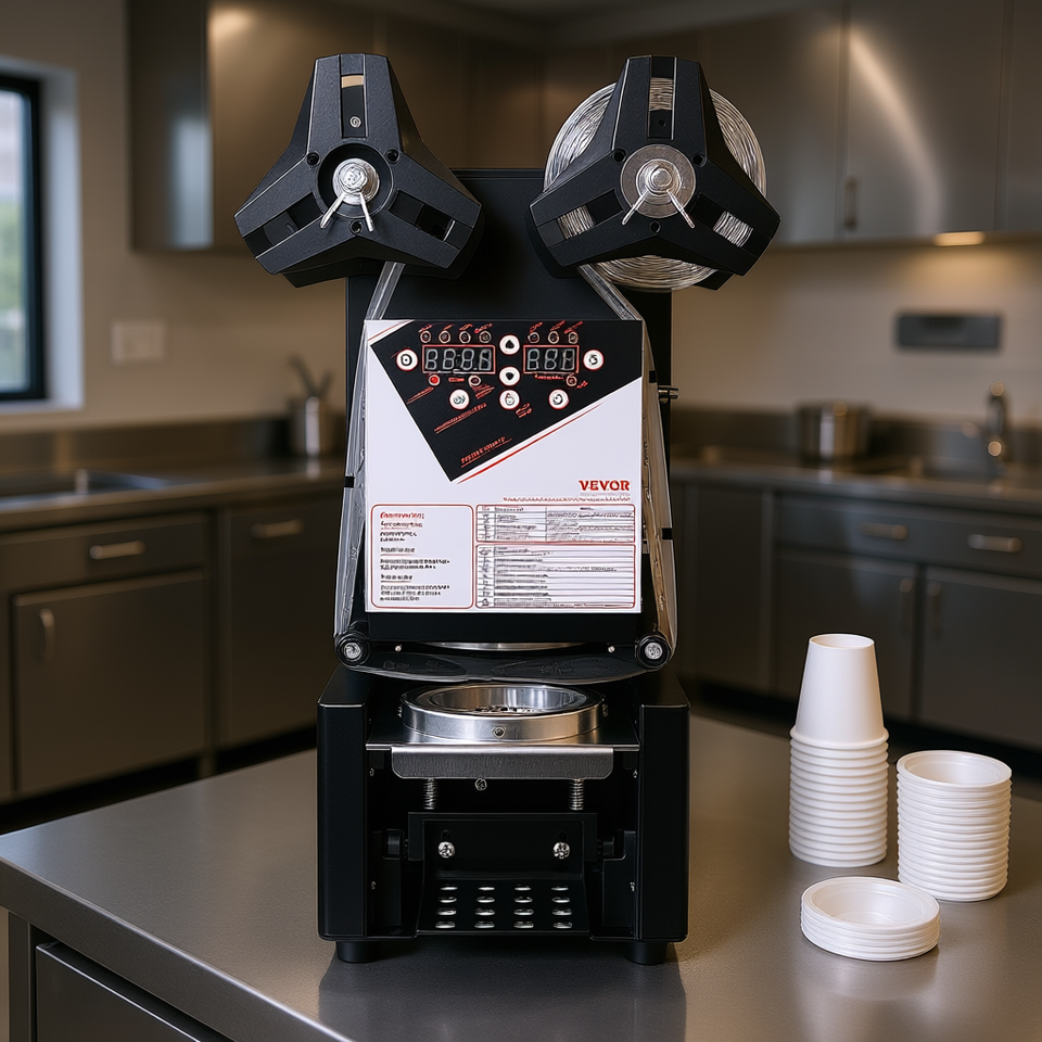 Scelleuse électrique entièrement automatique pour thé Boba Vevor, 500-650 tasses, contrôle numérique, panneau LCD, machine de scellage thermique