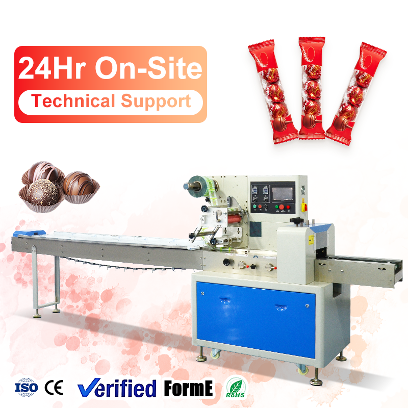 Machine d'emballage horizontale entièrement automatique pour sachets de bonbons au caramel et au chocolat avec système de scellage de film haute vitesse