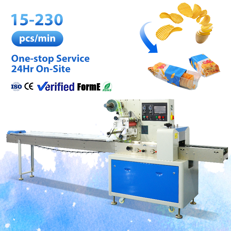 Machine d'emballage horizontale entièrement automatique pour chips, biscuits, chocolat et autres snacks