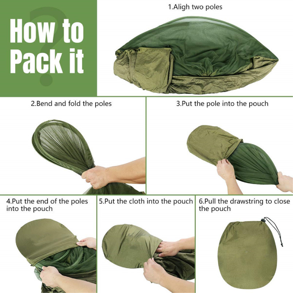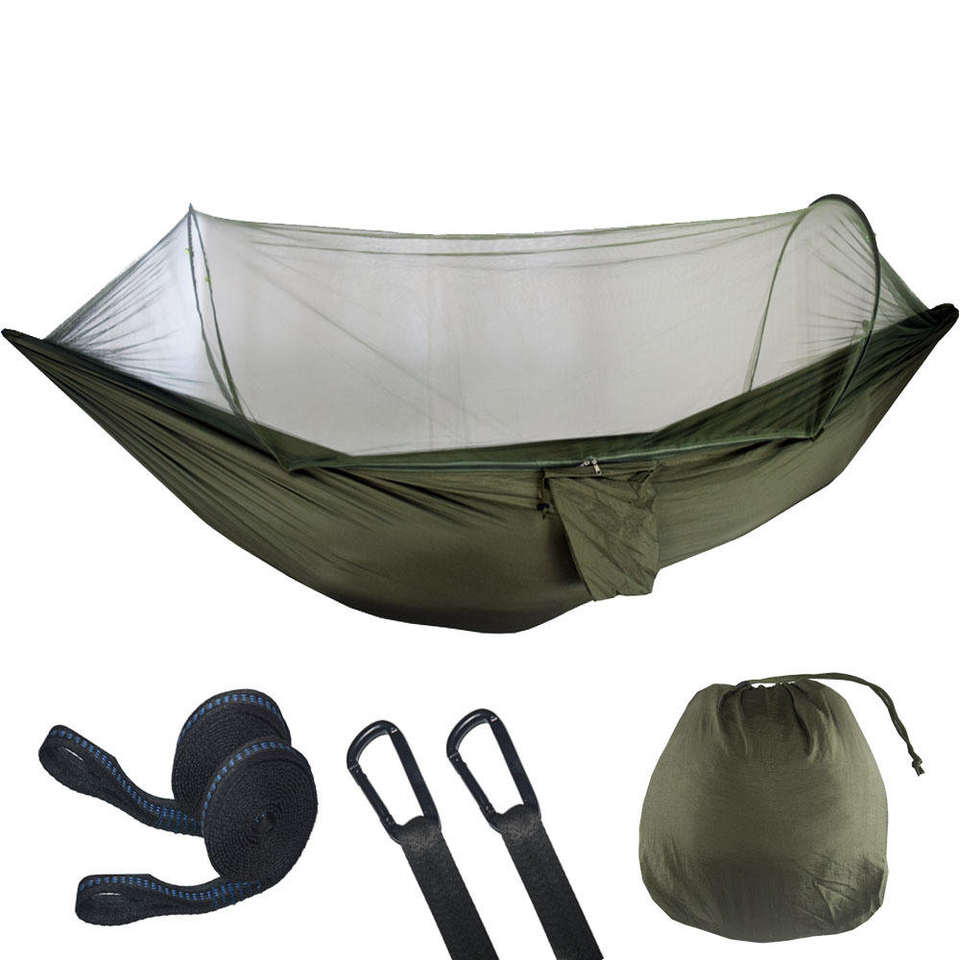 Hamac de camping anti-moustiques entièrement automatique, hamac simple à ouverture rapide avec support en acier inoxydable, hamac d'extérieur sans suspension