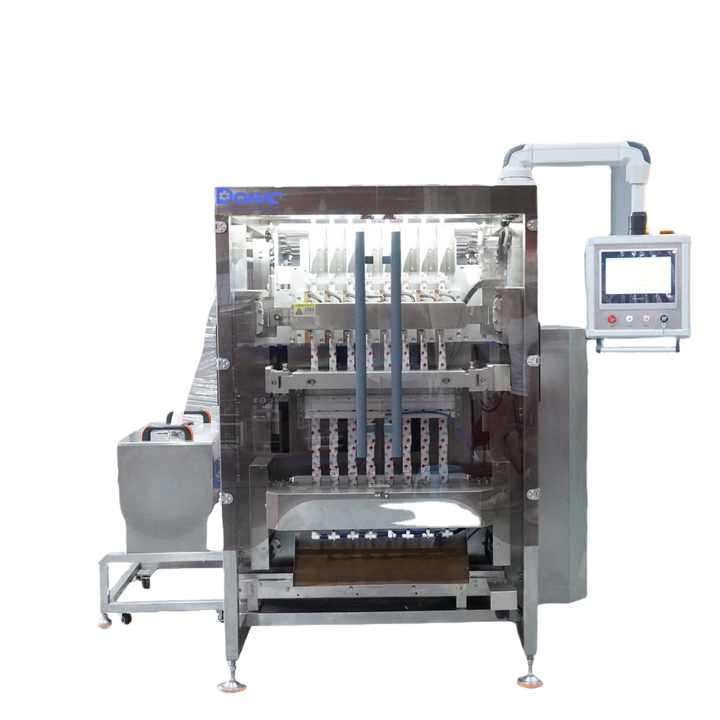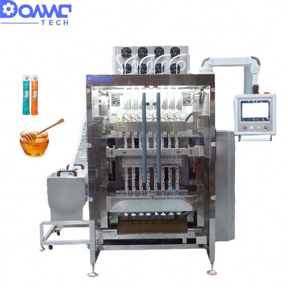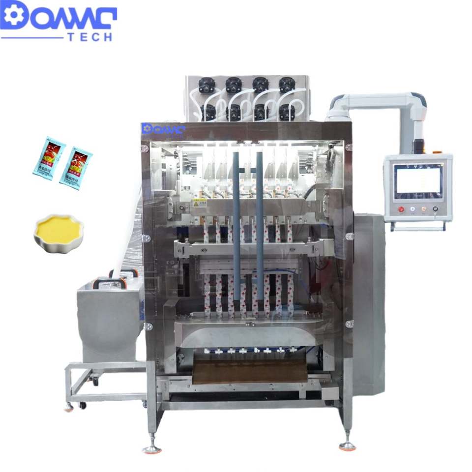 Machine de remplissage et d'emballage entièrement automatique multi-voies pour sachets à trois soudures latérales, pour sauce tomate, ketchup, liquides (10-100g) et jus