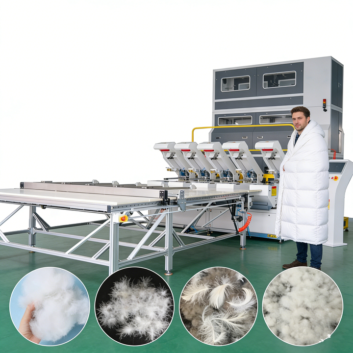 Machine de remplissage entièrement automatique multi-tubes haute précision 0,5g sans fuite pour housses de couette et d'oreiller de type canal (plumes et duvet)