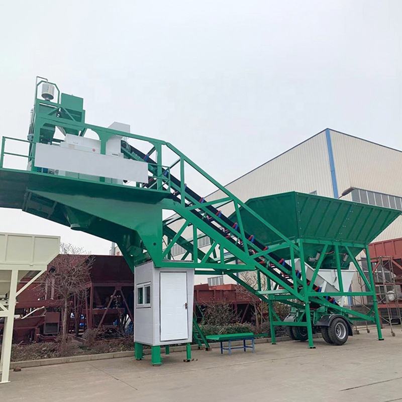 Centrale à béton mobile entièrement automatique contrôlée par PLC, 25-60 m³/h, avec moteur et engin, à vendre