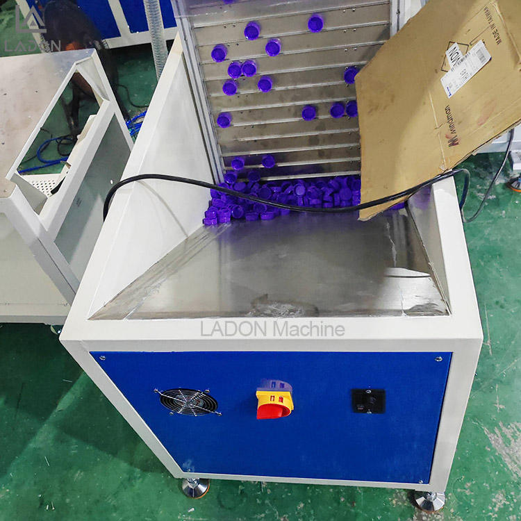 Machine de tampographie entièrement automatique avec bras robotique pour le retrait des bouchons de bouteilles en plastique, imprimante à tampon avec écran tactile et convoyeur