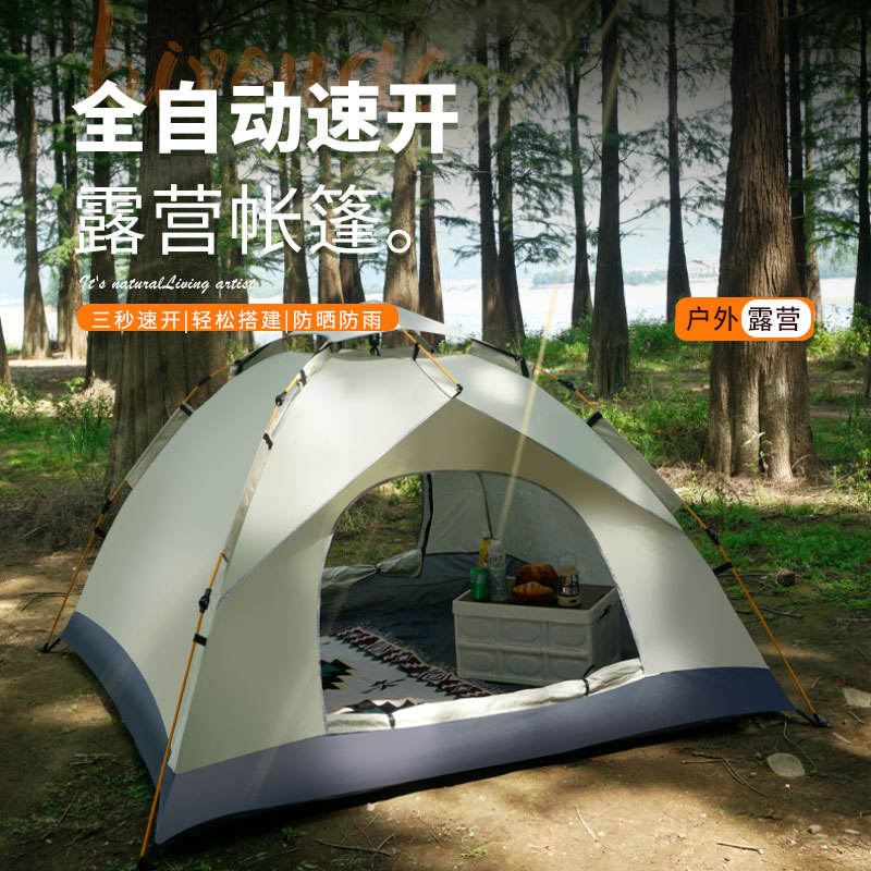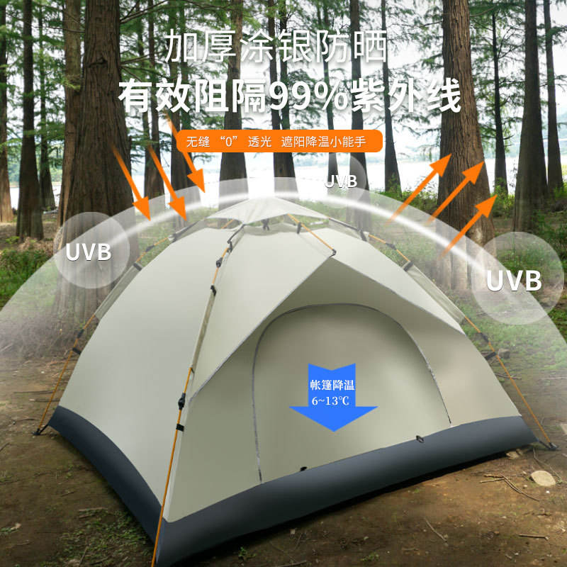 Tente de camping entièrement automatique à ouverture rapide, double couche, imperméable, protection UV, utilisation en extérieur, 2 personnes, tissu Oxford