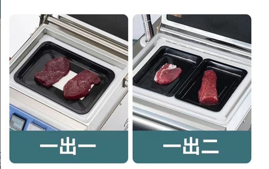 Entièrement automatique prêt repas riz viande Steak poulet porc légumes fruits Durian sous vide peau plateau scellant Machine